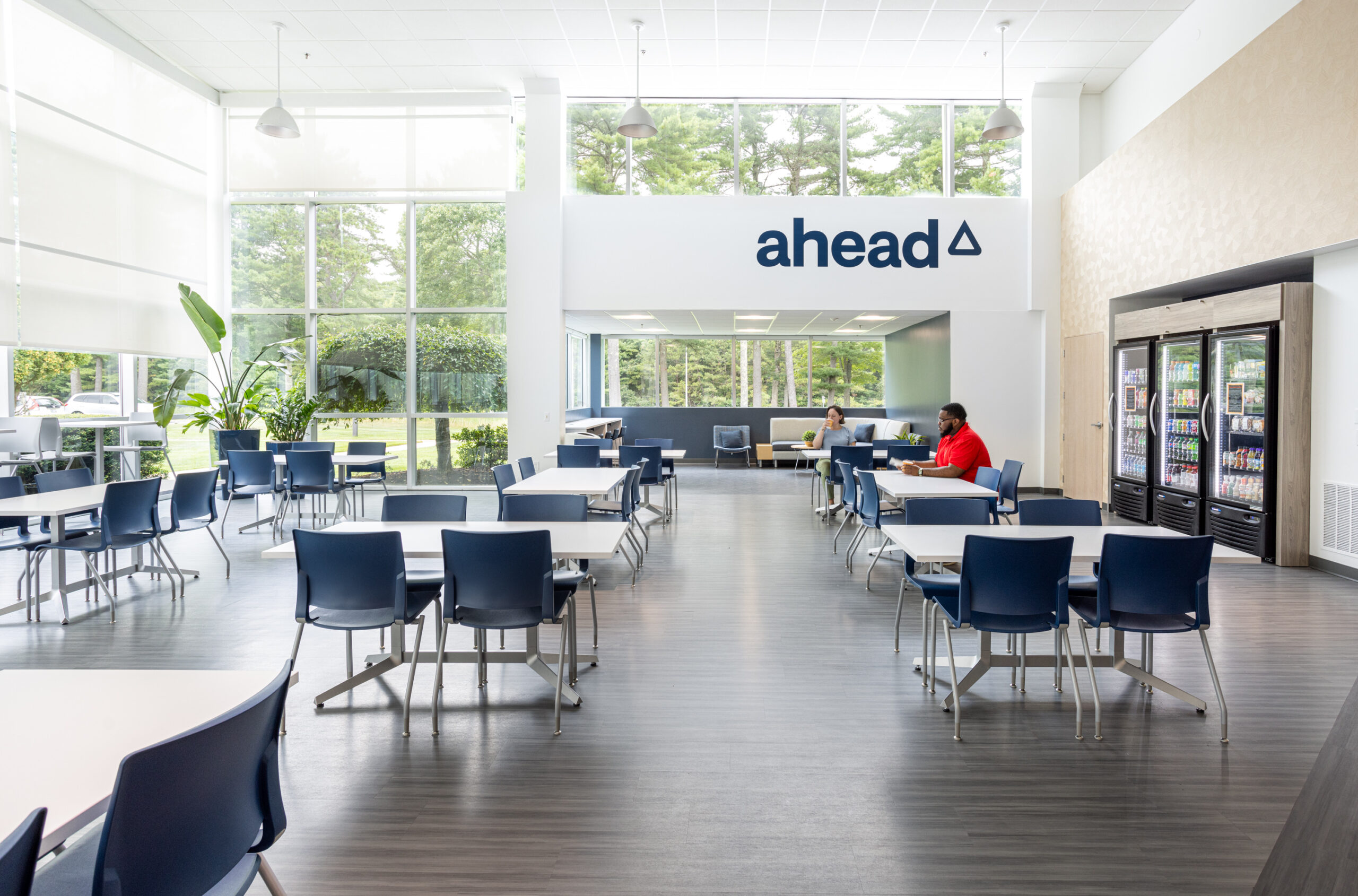 In collaboration with Sheehan’s Office Interiors, Vision 3 curated flexible furniture solution to maximize flexibility with the cafeteria. From daily dining to corporate town halls, the space is well-positioned to adapt to serve Ahead’s colleagues into the future.