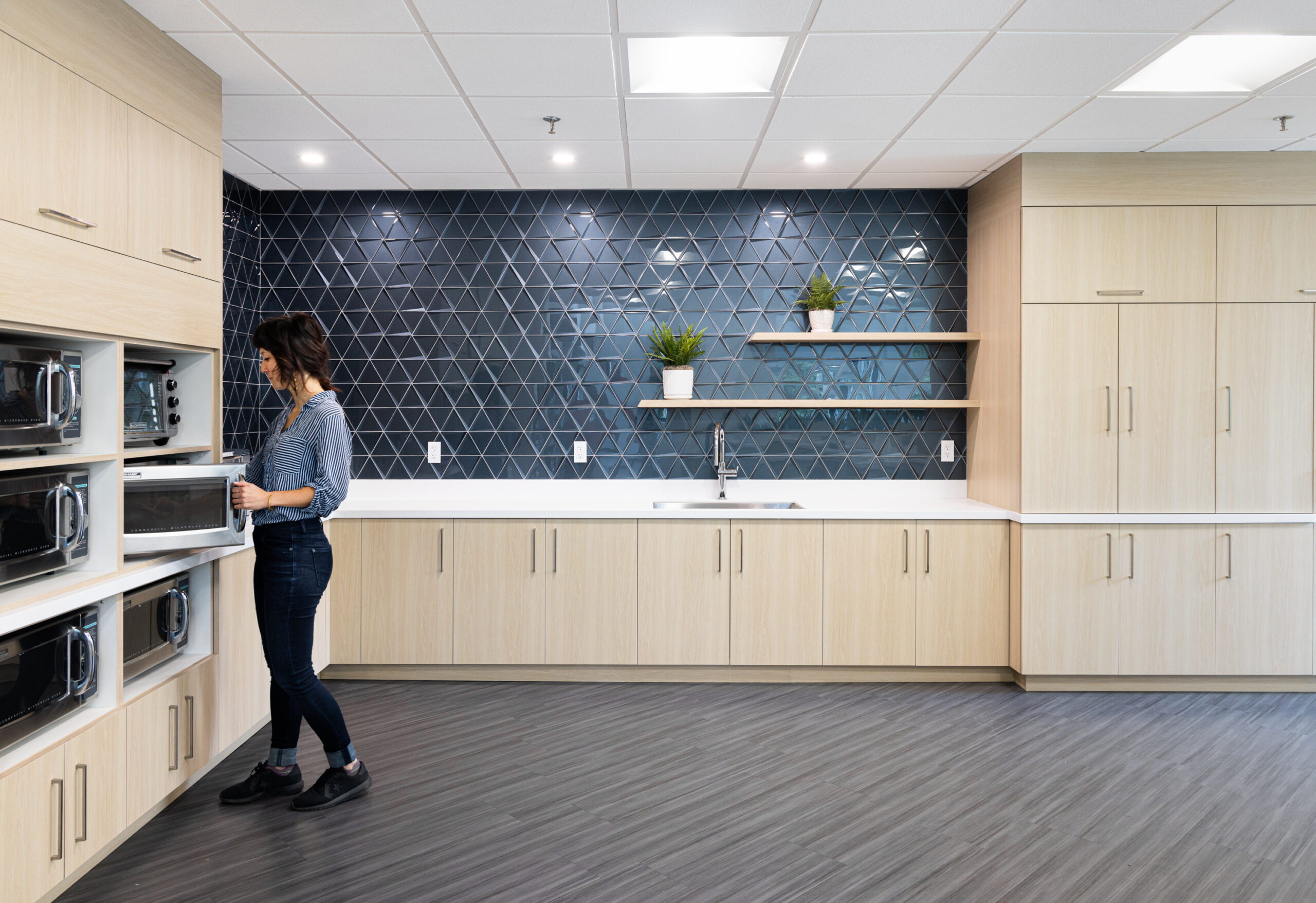 With a focus on creating a clean, open, optimized layout, Vision 3’s design delivers. Subtle nods to their triangular motif were woven into flooring patterns, wallcoverings, and decorative elements to establish a modern gathering space filled with natural light and visual connections to the outdoors – the key environment within which their products are utilized every day.