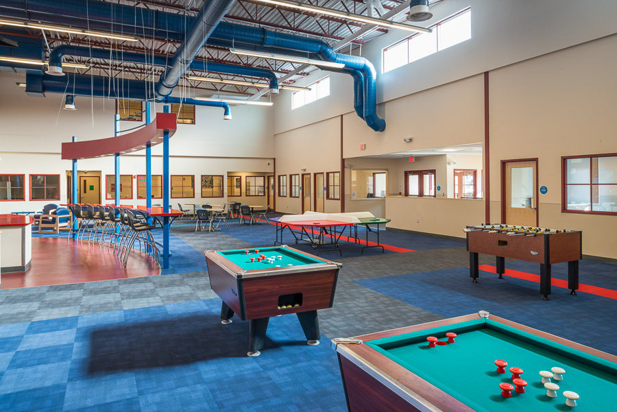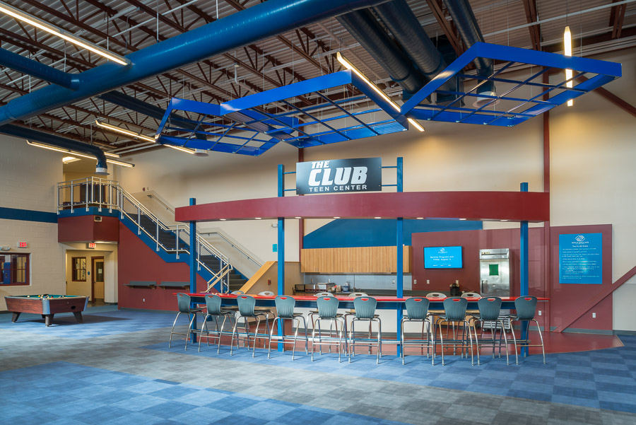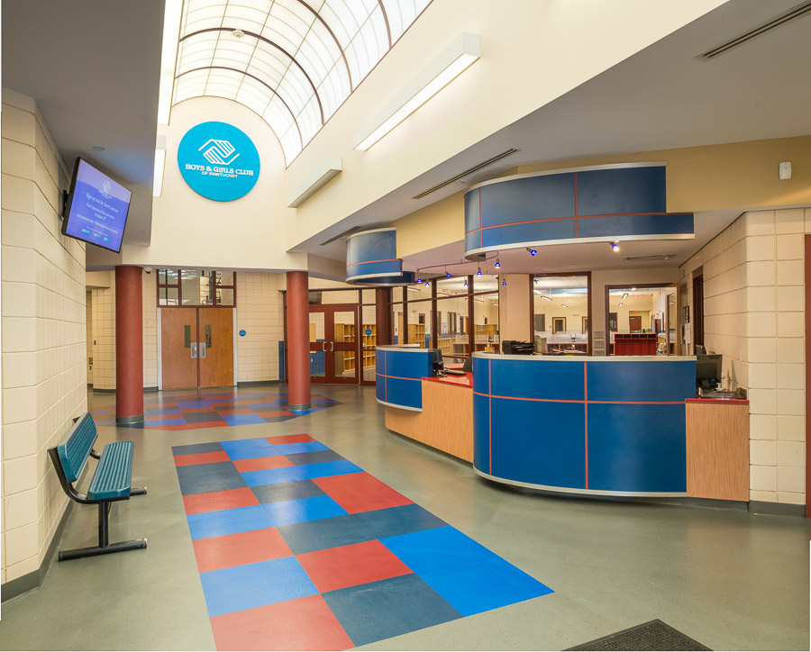 Vision 3 completed the master plan, design and construction of a 17,500 s.f. addition to the Alfred Elson, Jr. Boys & Girls Club in Pawtucket. The new addition houses the Club’s Teen Center, which provides program and homework rooms, a full size gymnasium, fitness center, and games area. New administration offices are located in the upper level. A goal of the project was to promote safety by providing visual connections between most of the spaces, while creating separate spaces. The project included a major interior renovation of the 35,000 s.f. existing building and additional viewing area in the pool room, as well as renovations to the Arts program (dance, music, art), a commercial kitchen, and multi-purpose dining space. Work was completed while existing facility remained in operation and renderings were provided for fundraising efforts.