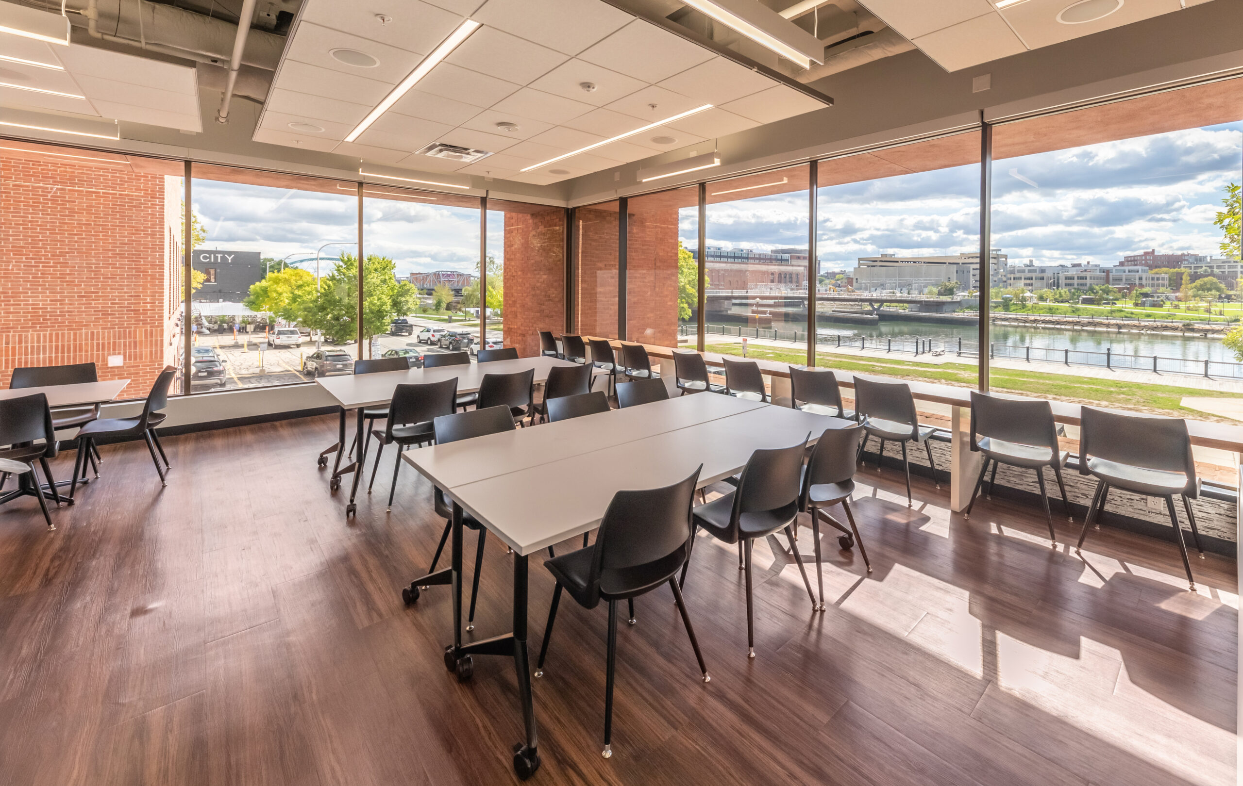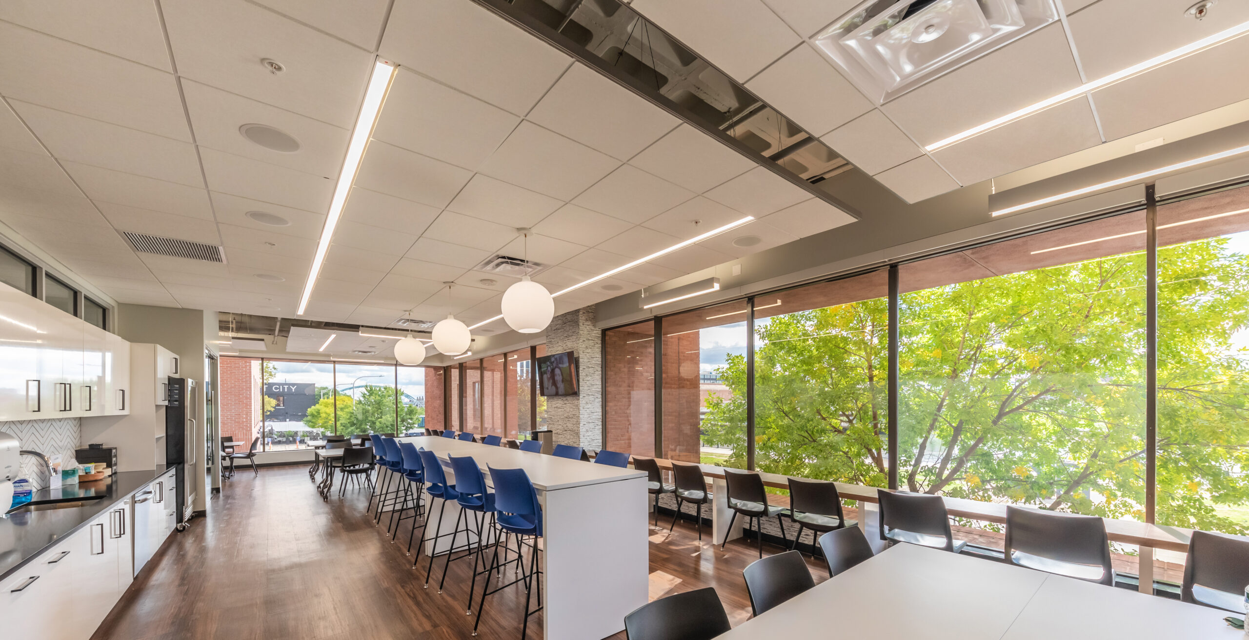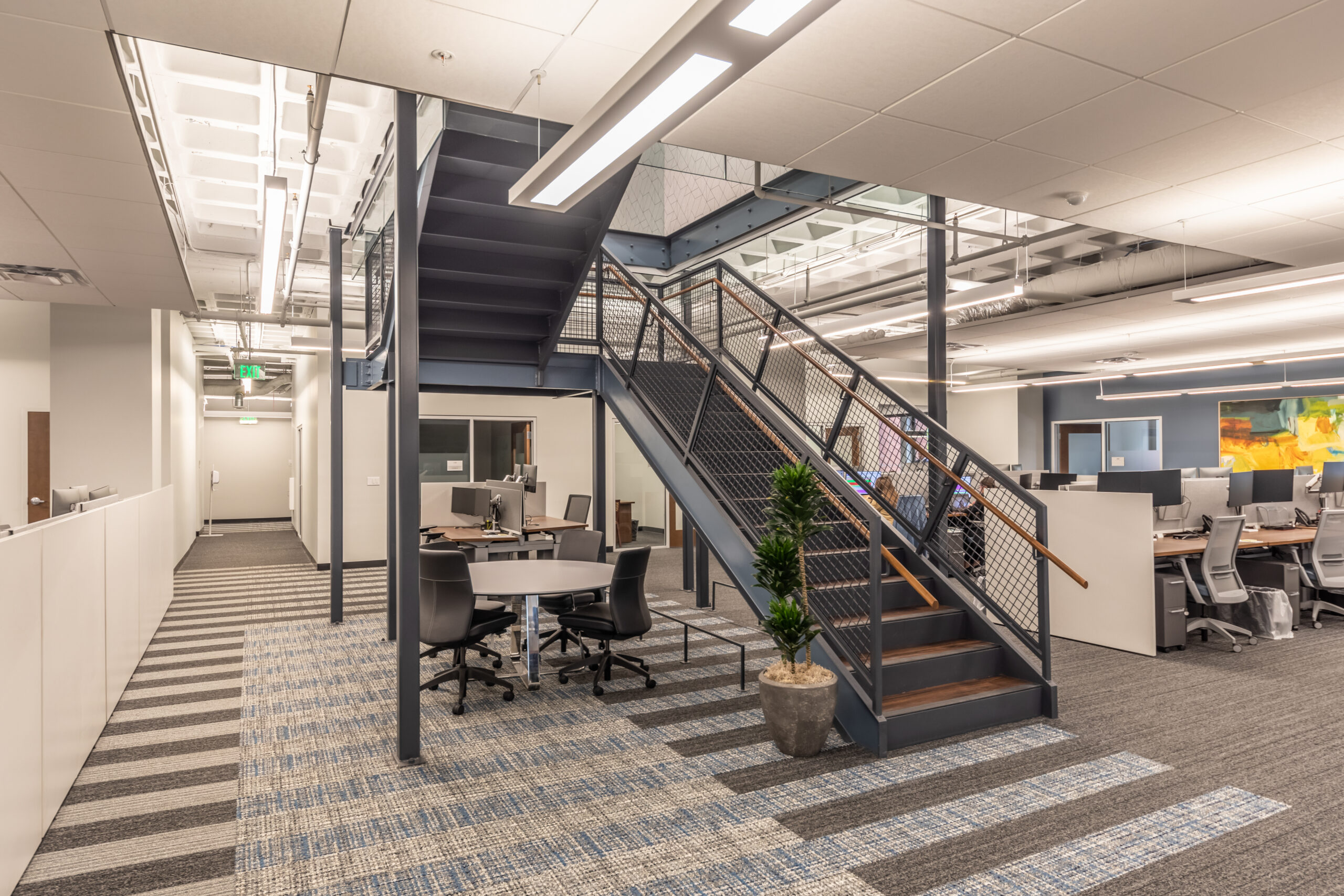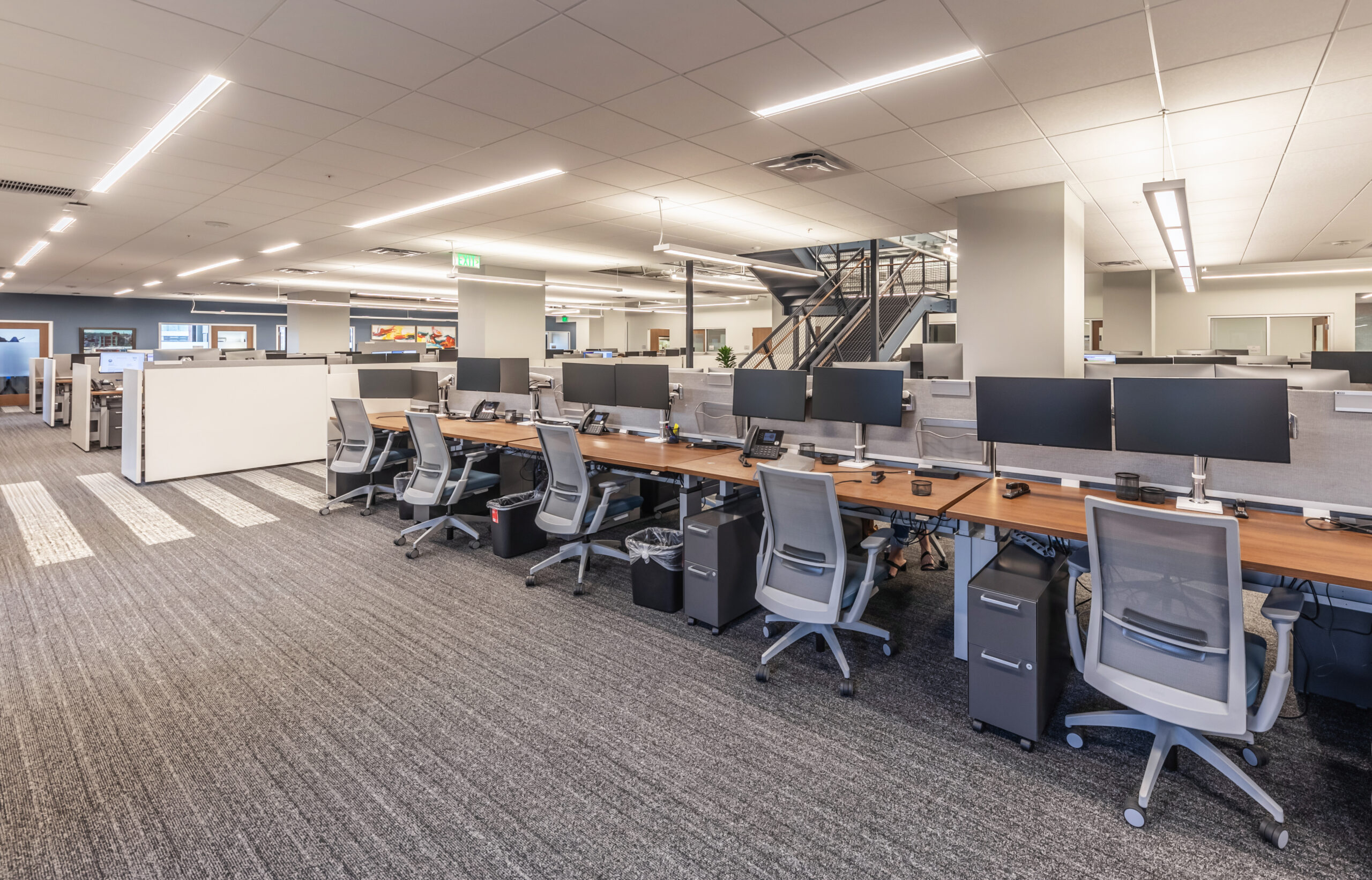 Vision 3 Architects completed an interior fit-out and renovation for the law offices of Chisholm, Chisholm and Kilpatrick in downtown Providence, RI. The interior renovation involved approximately 31,000 sf of tenant space and common area on the first, second and third floors of the building. CCK requested modern design touches with an open, contemporary feel to help them hire and retain young talent in a competitive legal job market. The open office concept features more workstations than traditional private offices in a departure from a traditional law firm layout, with collaborative spaces and huddle rooms to accommodate the need for private conversations and “heads down” work.
