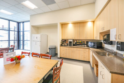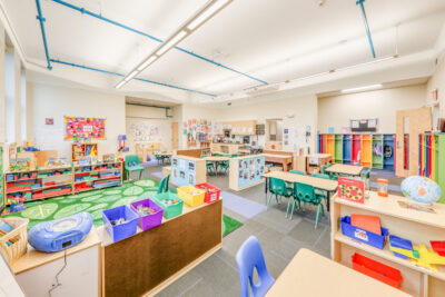 Additional improvements included replacement of all HVAC, electrical, plumbing and fire protection systems. The site improvements include new site utilities, new playground area, new fencing, site lighting, new walkways, new parking area, and new landscape areas. The facility incorporates multiple sustainable design features, including a high-performance energy efficient HVAC system that provides individual space climate control, low water consumption plumbing fixtures, hands-free automated faucets, low VOC emitting finishes, high U-value performance glazing and window systems, and a thermally improved building envelope exceeding energy code minimum requirements. The building also features the latest security and control access technology consisting of biometrics access to provide security control to and from the daycare spaces.