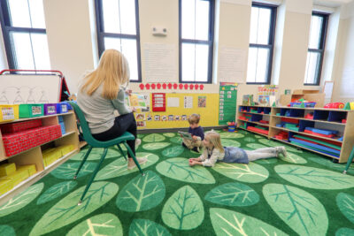 The Project includes a two-story 2,091 +/- s.f. building addition with a 1,116 +/- s.f. basement. The building addition accommodates a new accessible building entrance, reception area, and a new elevator. The new program space features six new preschool classrooms, new children’s restrooms, faculty offices, a food prep area; and administrative offices on the first and second floors. The basement-level includes support spaces, a multi-purpose space for local community use, and utility spaces. Common areas include meeting space, staff restrooms, and storage.