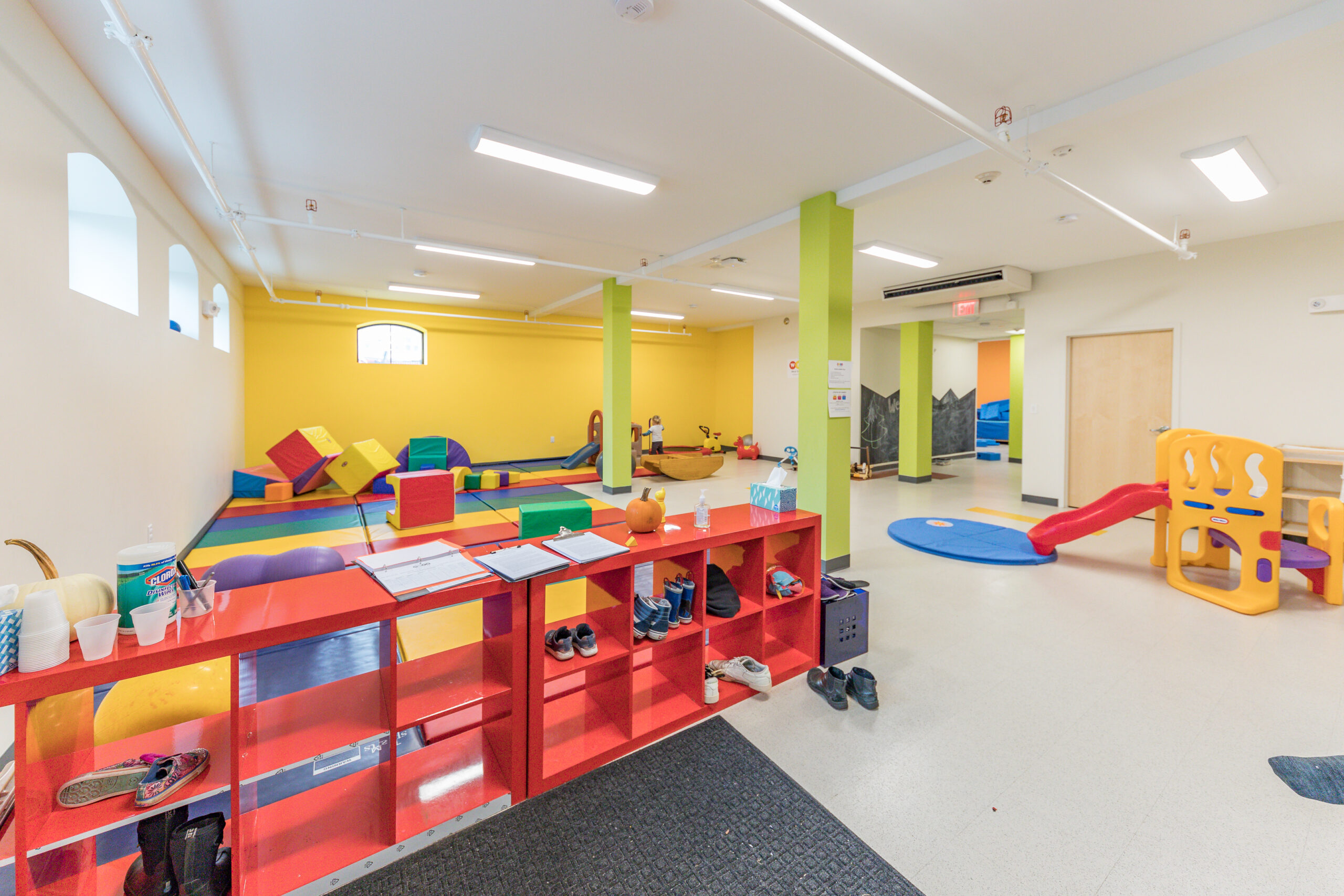 The Project includes a two-story 2,091 +/- s.f. building addition with a 1,116 +/- s.f. basement. The building addition accommodates a new accessible building entrance, reception area, and a new elevator. The new program space features six new preschool classrooms, new children’s restrooms, faculty offices, a food prep area; and administrative offices on the first and second floors. The basement-level includes support spaces, a multi-purpose space for local community use, and utility spaces. Common areas include meeting space, staff restrooms, and storage.