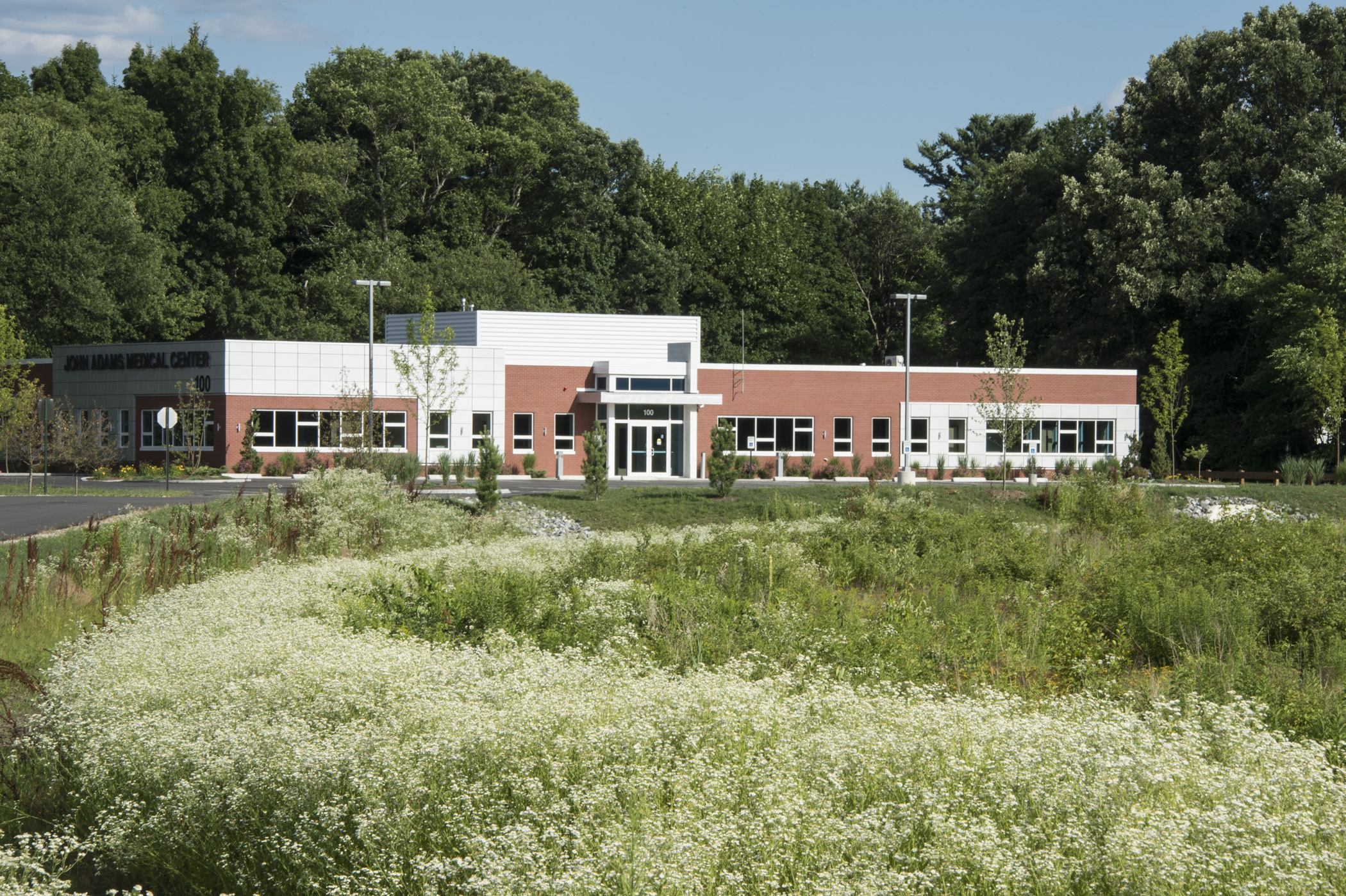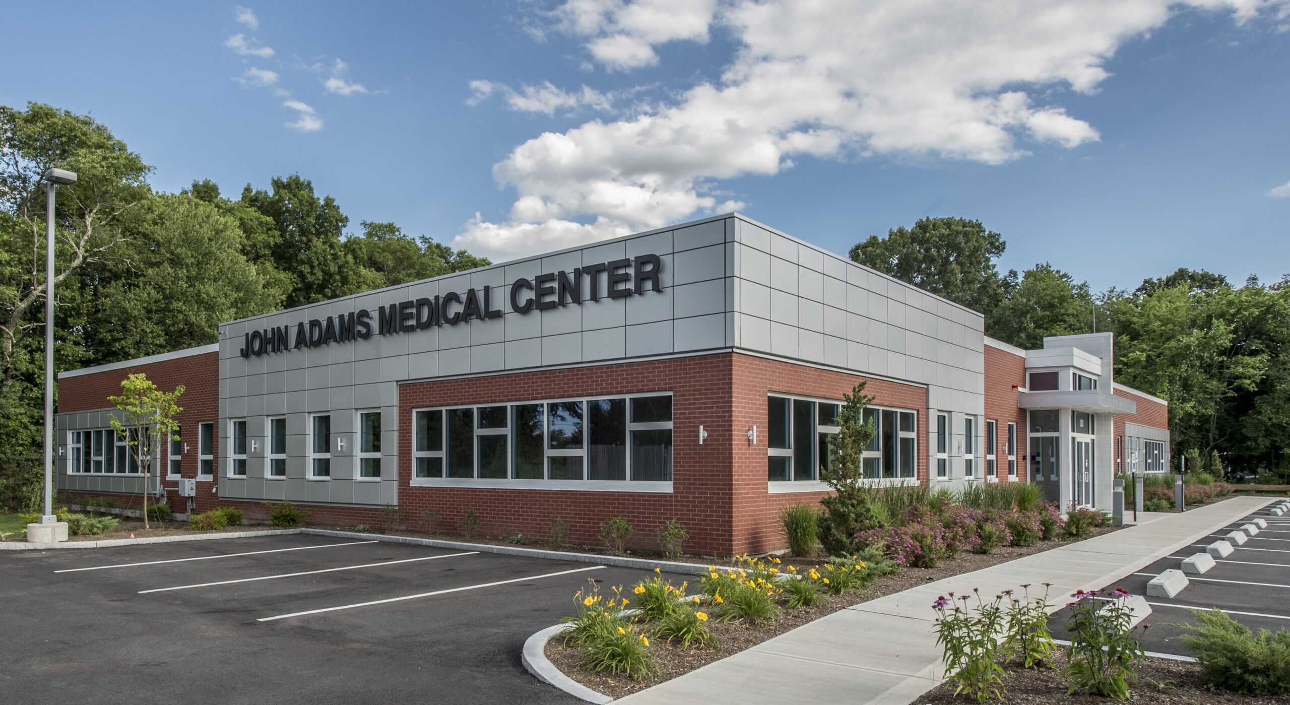 The John Adams Medical Center was designed as a single story, core-and-shell medical office building that could accommodate up to three separate tenants. Upon completion of the exterior shell and the interior core, the building was leased by Steward Healthcare System as a single tenant. The interior fit-out involved the design of a multi-practitioner, multi-discipline office space where all physicians shared patient and staff support areas, including but not limited to waiting, reception, pediatric waiting, staff lounge, lab services, and business offices. The principal disciplines were designed for primary care, cardiac care, and obstetrics.