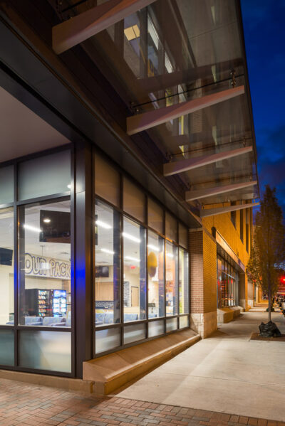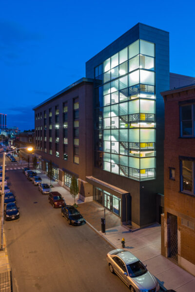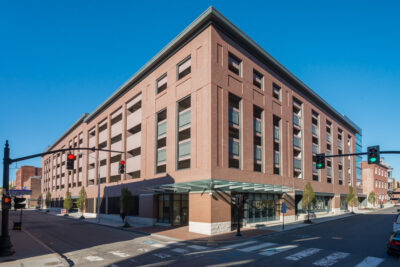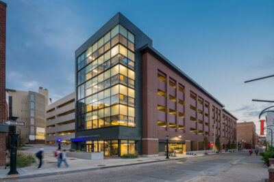 The six-story, 750-car, open parking structure is located at the intersection of Richmond and Pine Streets in the Providence Downtown Historic District. In association with Walker Parking Consultants, Vision 3 Architects’ role as Image Architect included exterior façade design, coordination of all permitting activities including the Providence DownCity District Review Commission approvals, coordination of sitework and landscape architecture, as well as design of the first-floor commercial space on Richmond Street.