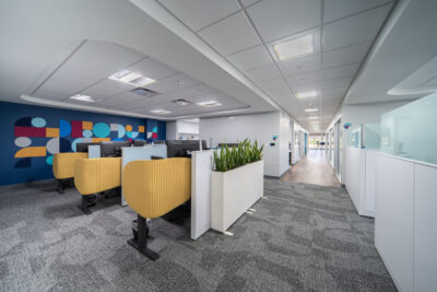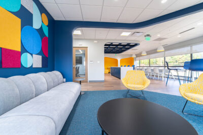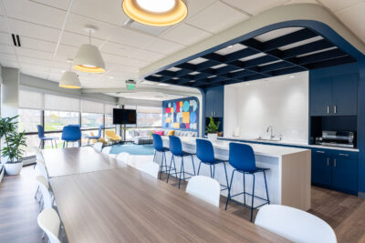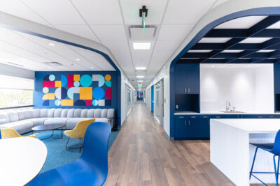 Vision 3 Architects has completed the office renovation for the Michigan Automobile Insurance Placement Facility (MAIPF) just outside of Detroit, in Farmington Hills, Michigan. This 5,200-square-foot space was designed to support hybrid and in-person collaboration, featuring vibrant colors, curved architectural details, and adaptable layouts that foster flexibility.