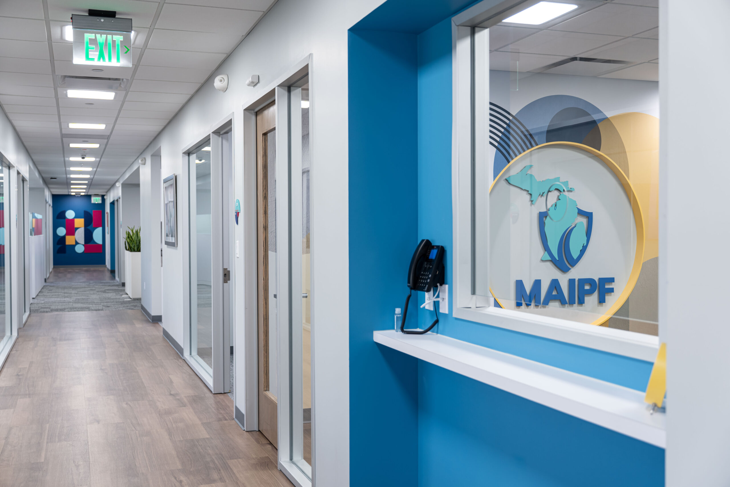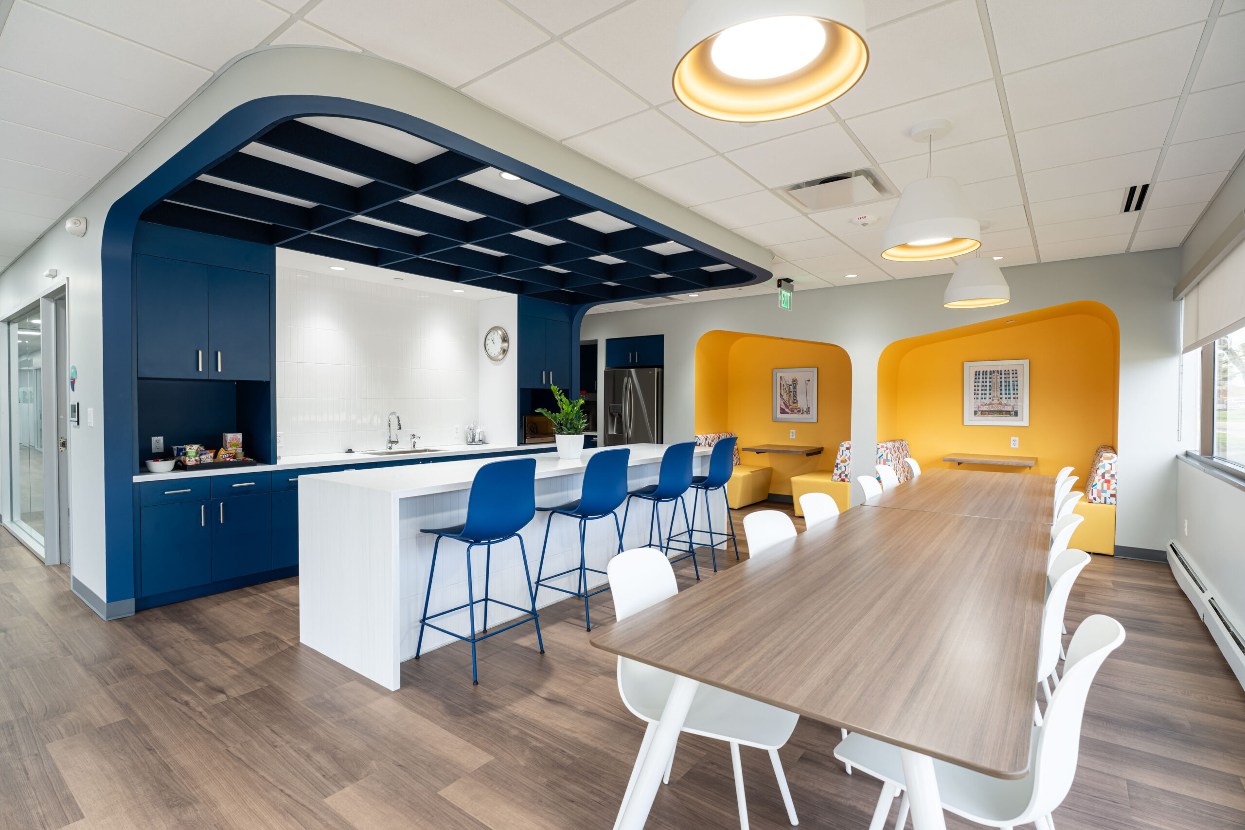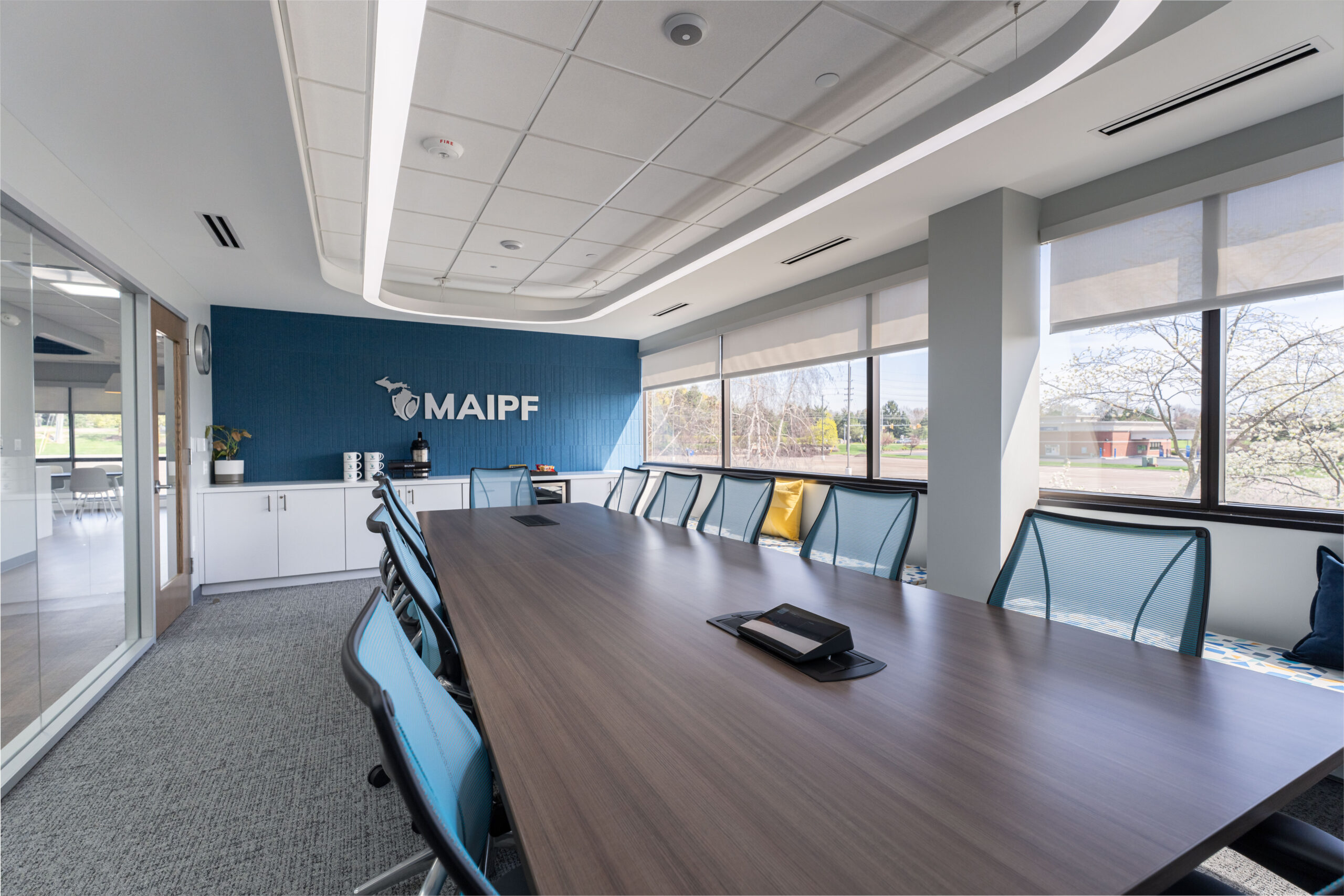 Our team provided comprehensive architectural, interior design, and construction phase services, coordinating all phases from our home office in Providence, Rhode Island. We conducted periodic site visits to Michigan throughout construction, ensuring seamless project management and quality control. The result is a dynamic workspace tailored to MAIPF’s functional needs and aesthetic vision.