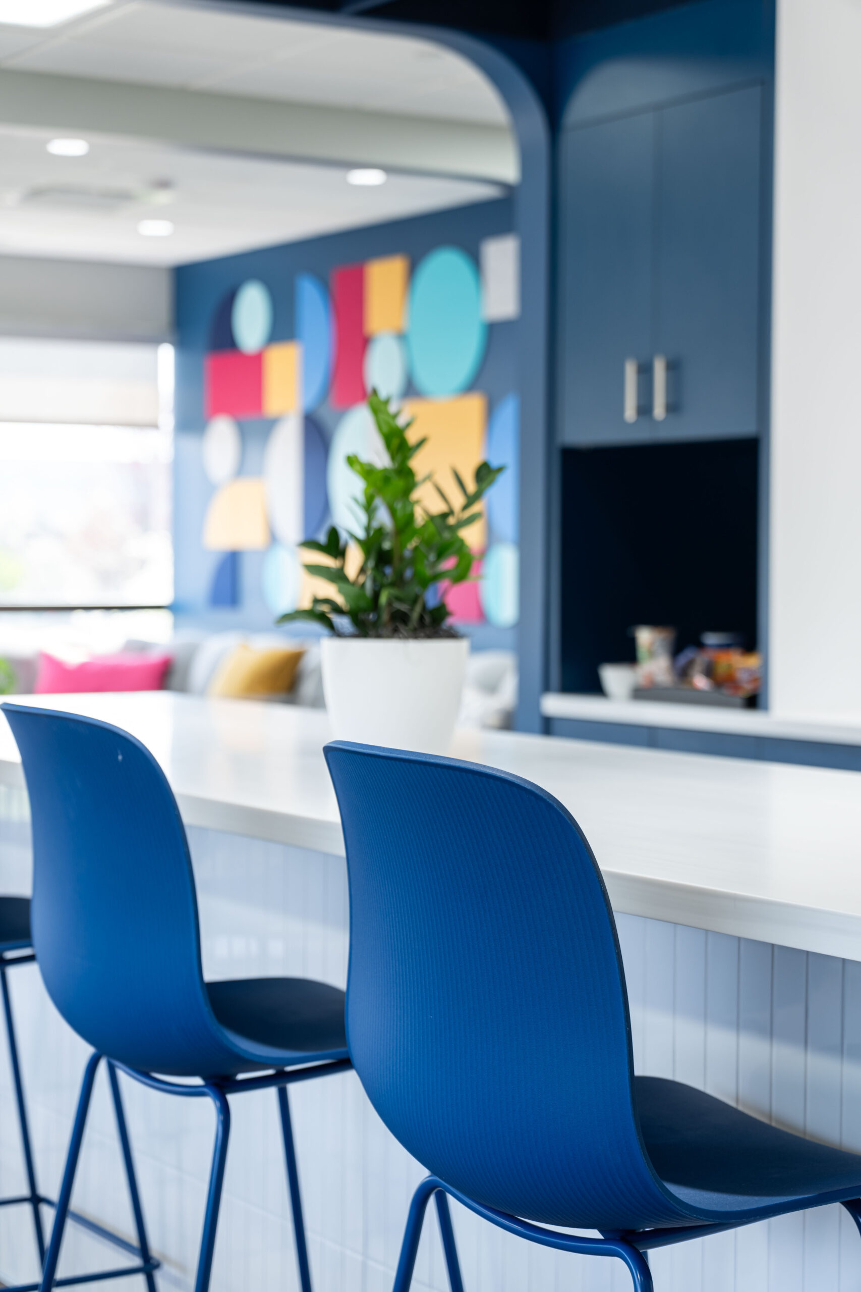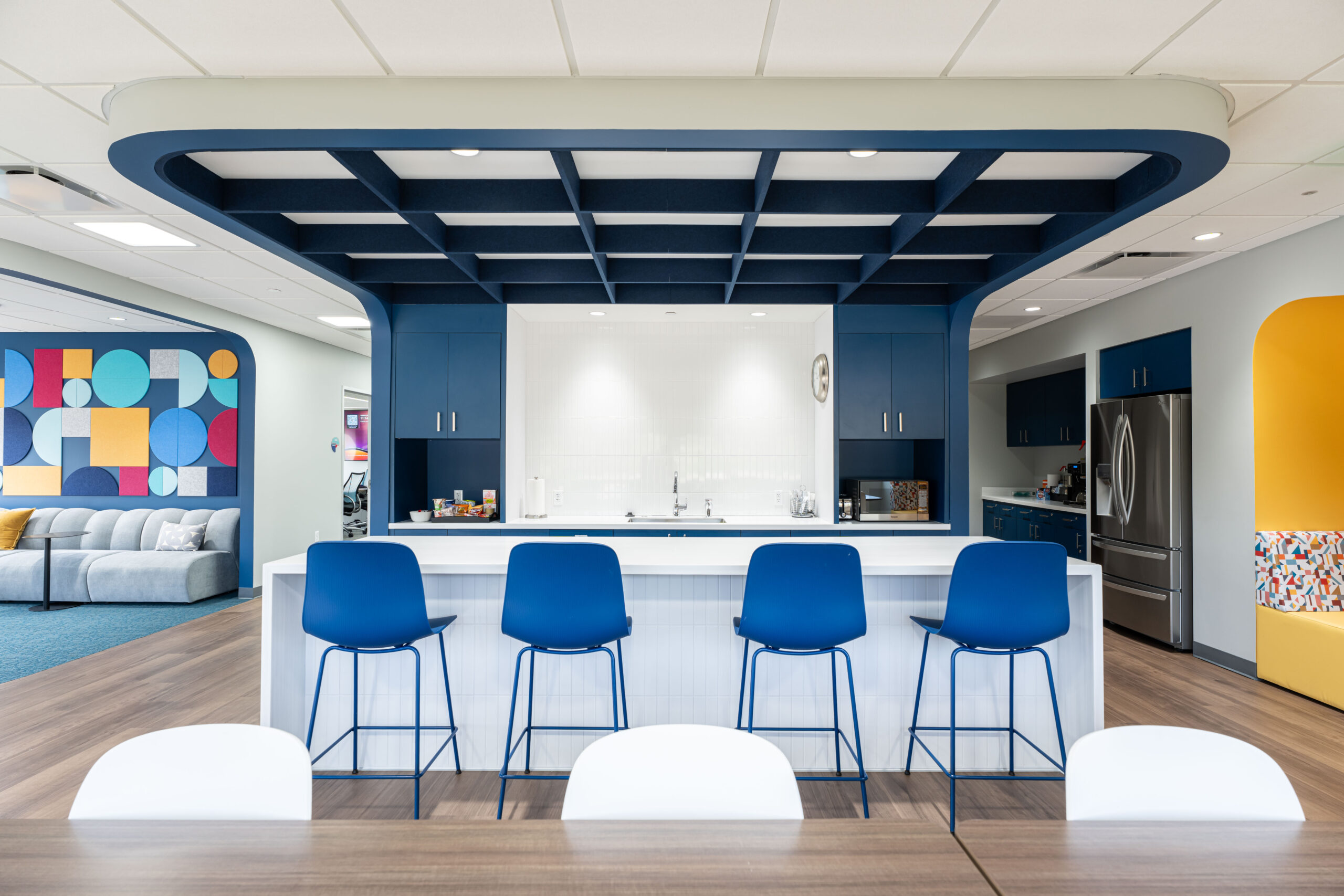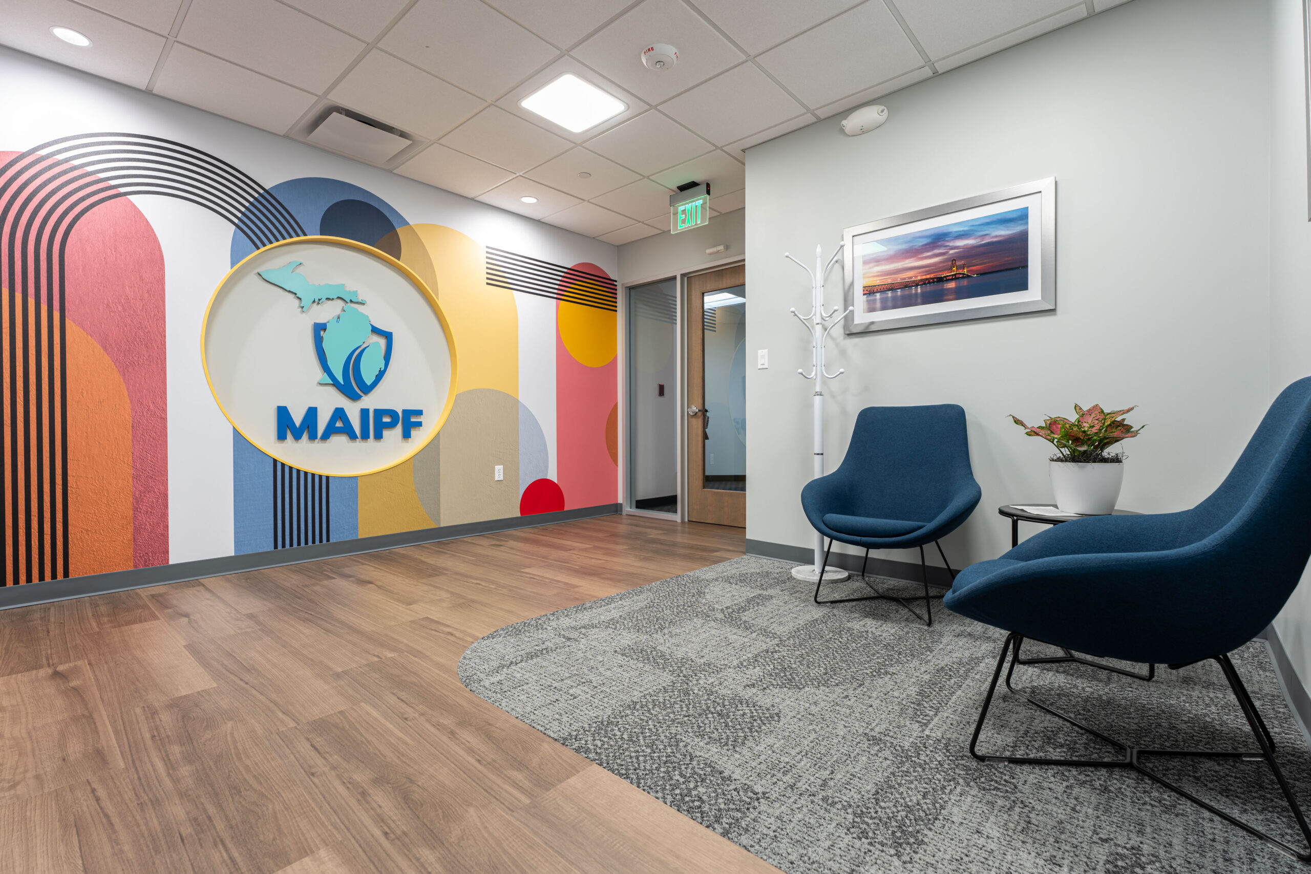 Vision 3 Architects has completed the office renovation for the Michigan Automobile Insurance Placement Facility (MAIPF) just outside of Detroit, in Farmington Hills, Michigan. This 5,200-square-foot space was designed to support hybrid and in-person collaboration, featuring vibrant colors, curved architectural details, and adaptable layouts that foster flexibility.