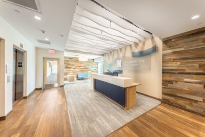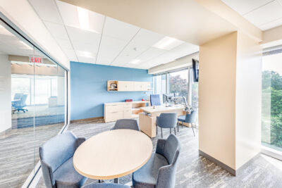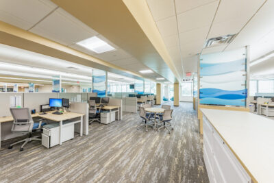 Vision 3 worked with Narragansett Bay Insurance to relocate their corporate headquarters to Johnston, RI from downtown Pawtucket, RI. Their newly, 28,100 s.f. fit out space is designed to reflect their recent re-branding and transformation into a larger regional insurer, with satellite offices up and down the east coast. The project includes state of the art offices, conference suites and data operations hub, along with a café-inspired break room. Coastal design cues are prevalent throughout the office, with relaxed colors and textures drawn from the seaside communities Narragansett Bay Insurance serves.
