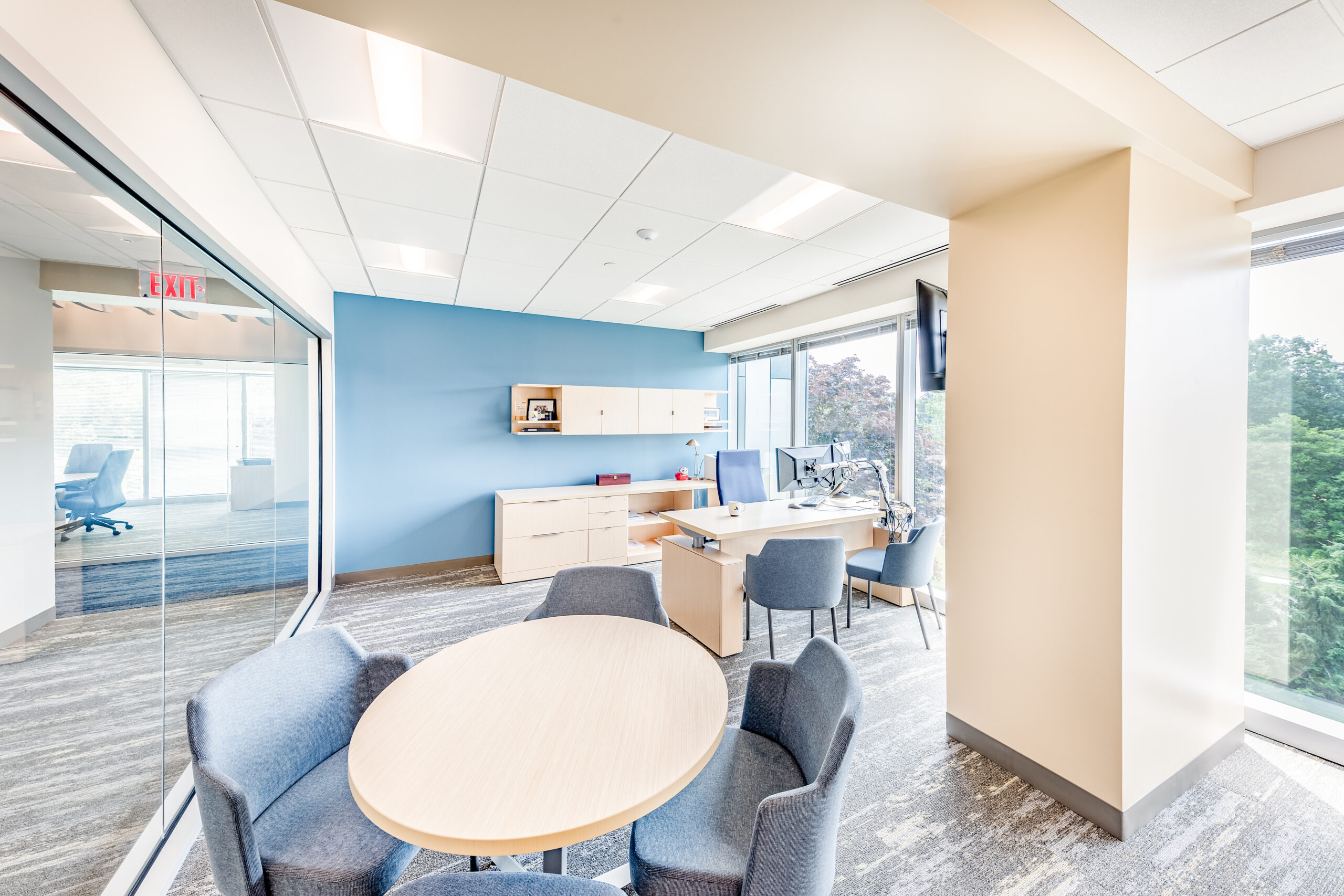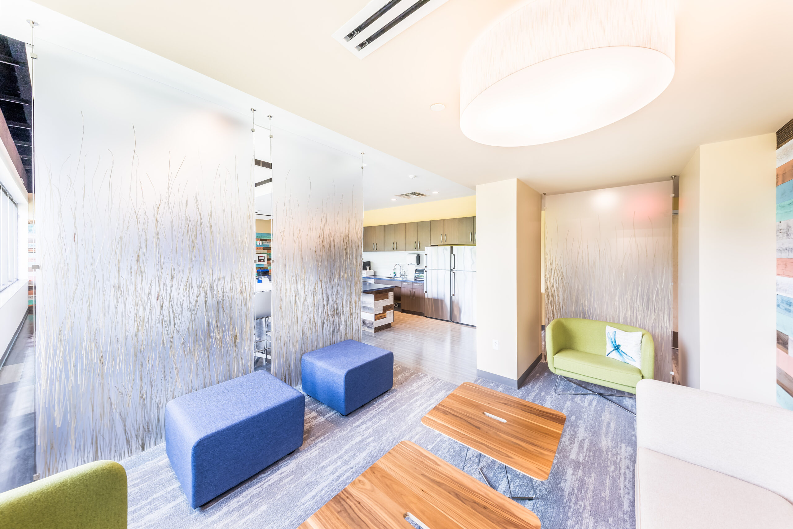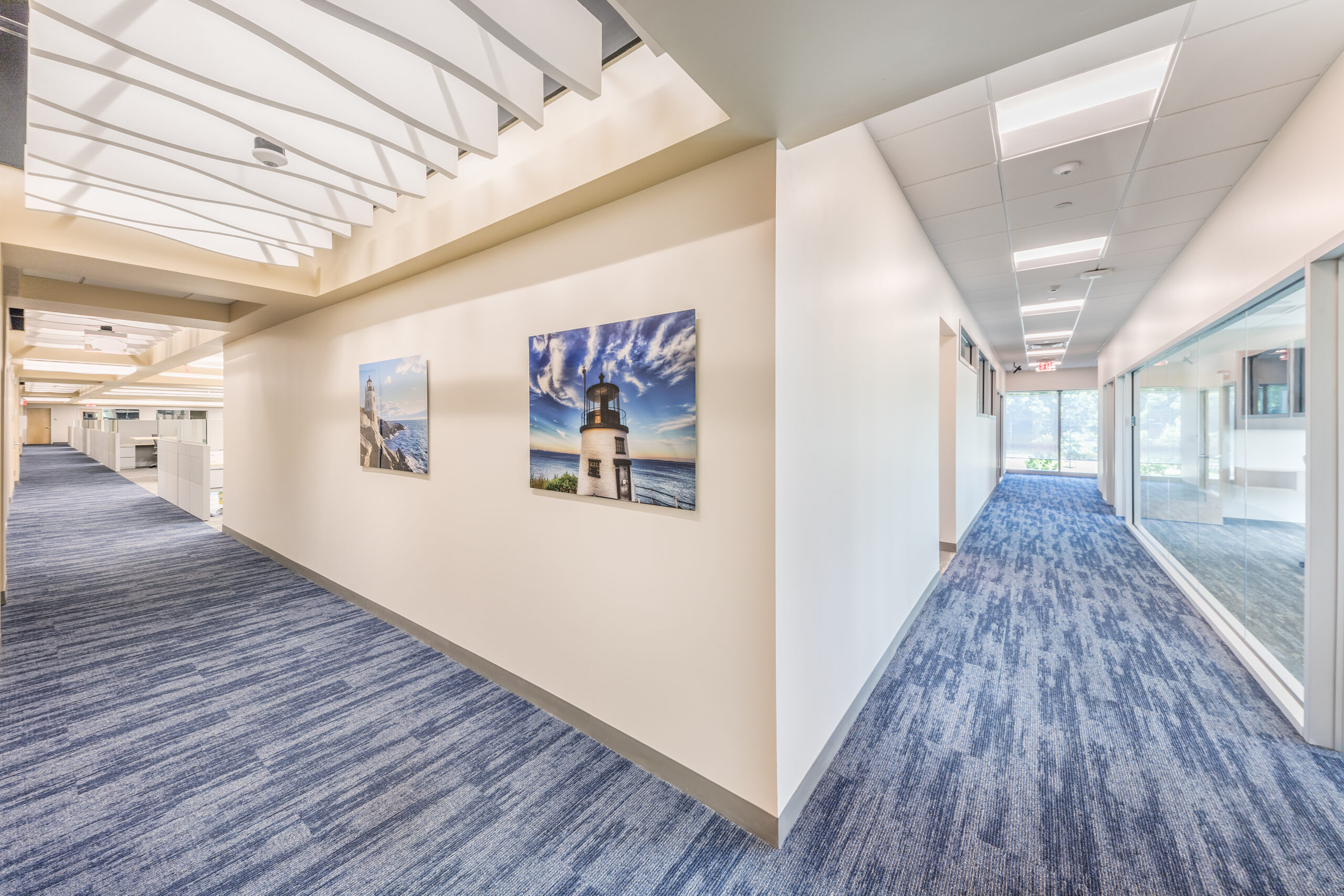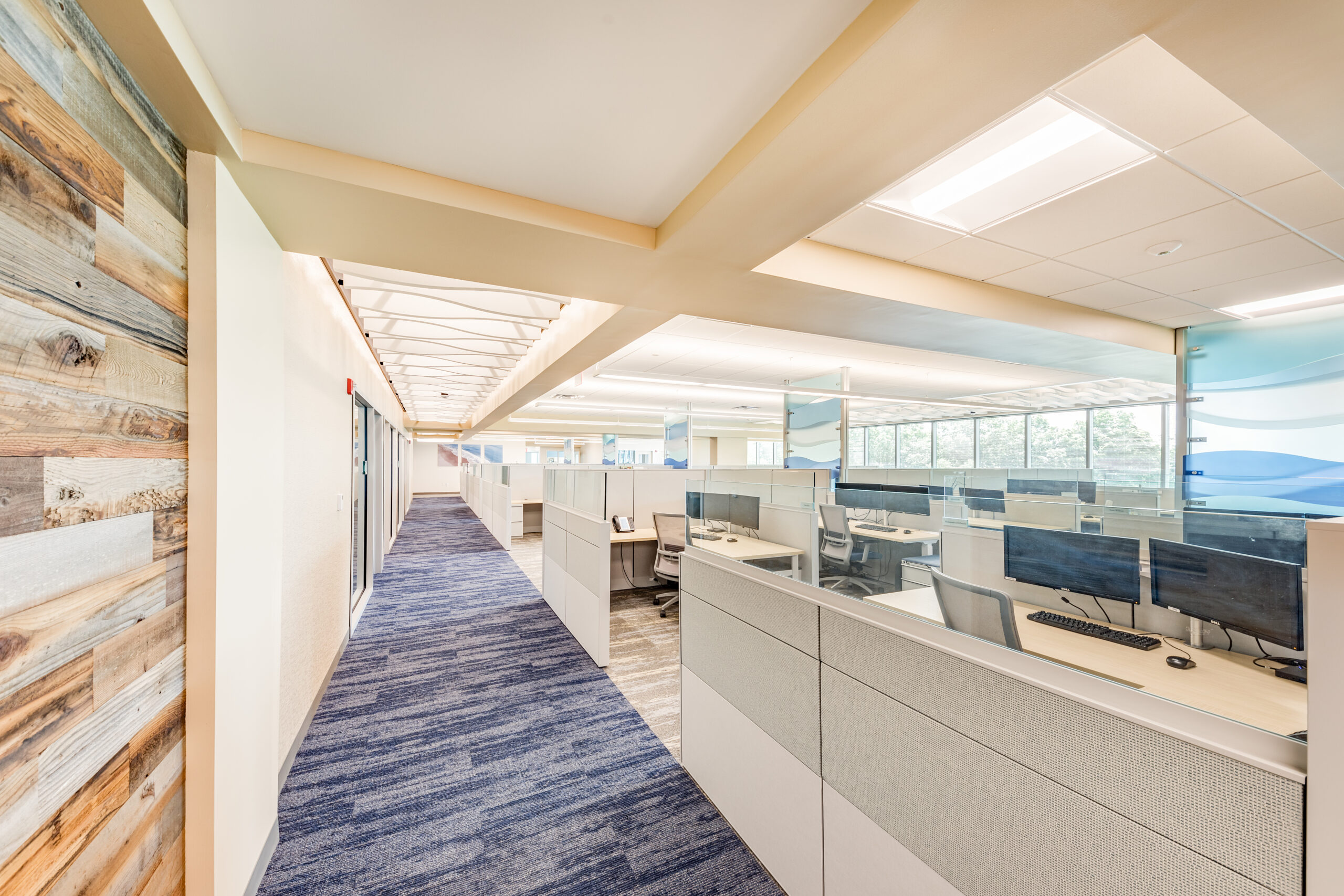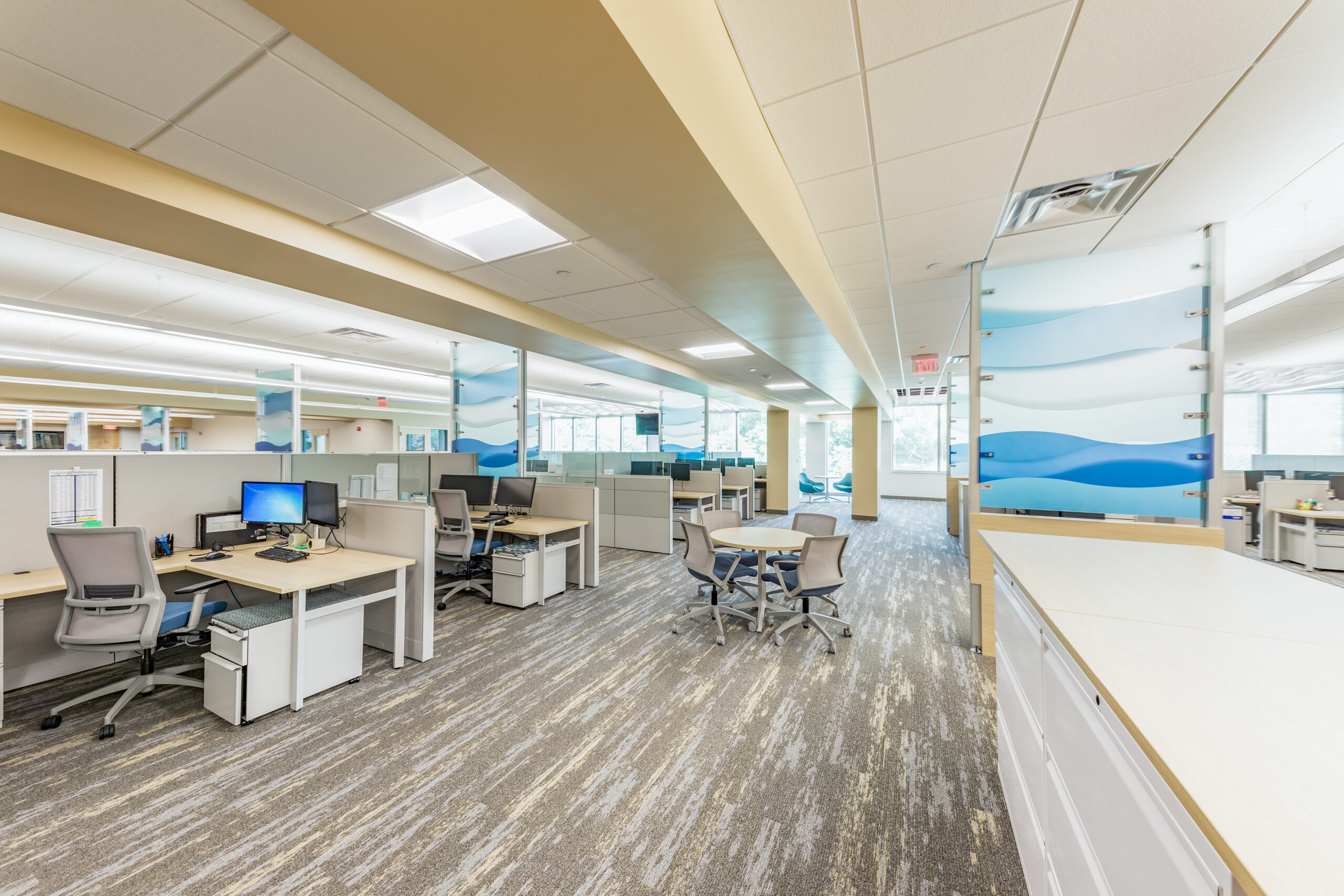 Vision 3 worked with Narragansett Bay Insurance to relocate their corporate headquarters to Johnston, RI from downtown Pawtucket, RI. Their newly, 28,100 s.f. fit out space is designed to reflect their recent re-branding and transformation into a larger regional insurer, with satellite offices up and down the east coast. The project includes state of the art offices, conference suites and data operations hub, along with a café-inspired break room. Coastal design cues are prevalent throughout the office, with relaxed colors and textures drawn from the seaside communities Narragansett Bay Insurance serves.