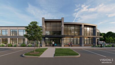 Vision 3 Architects was asked to reimage an aging medical office building for a potential future tenant who required approximately 6,500 additional square feet of program. By retaining the existing structure of the facility and carefully siting a new addition (along with partially recladding the building), we were able to generate an attractive, cost-conscious alternative to a new, ground-up facility.