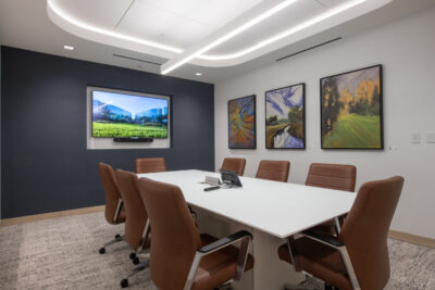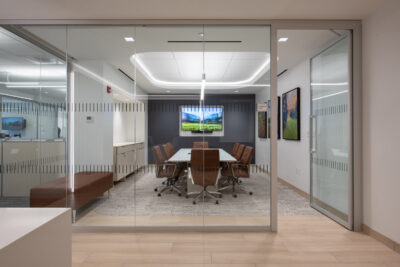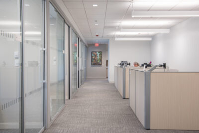 Vision 3 was pleased to work with Raymond James once again on another New England region interior fitout within approximately 4,500 square feet on the second floor of 55 William Street in Wellesley, MA. With the goal of maximizing daylight and views to the exterior, each of the eleven perimeter offices has continuous full height glass fronts, allowing light to be shared with the adjacent open office area. We worked closely with Raymond James’ furniture vendor to select pieces that compliment and balance the overall architectural themes, resulting in a space that feels comfortable and welcoming to associates and clients alike.