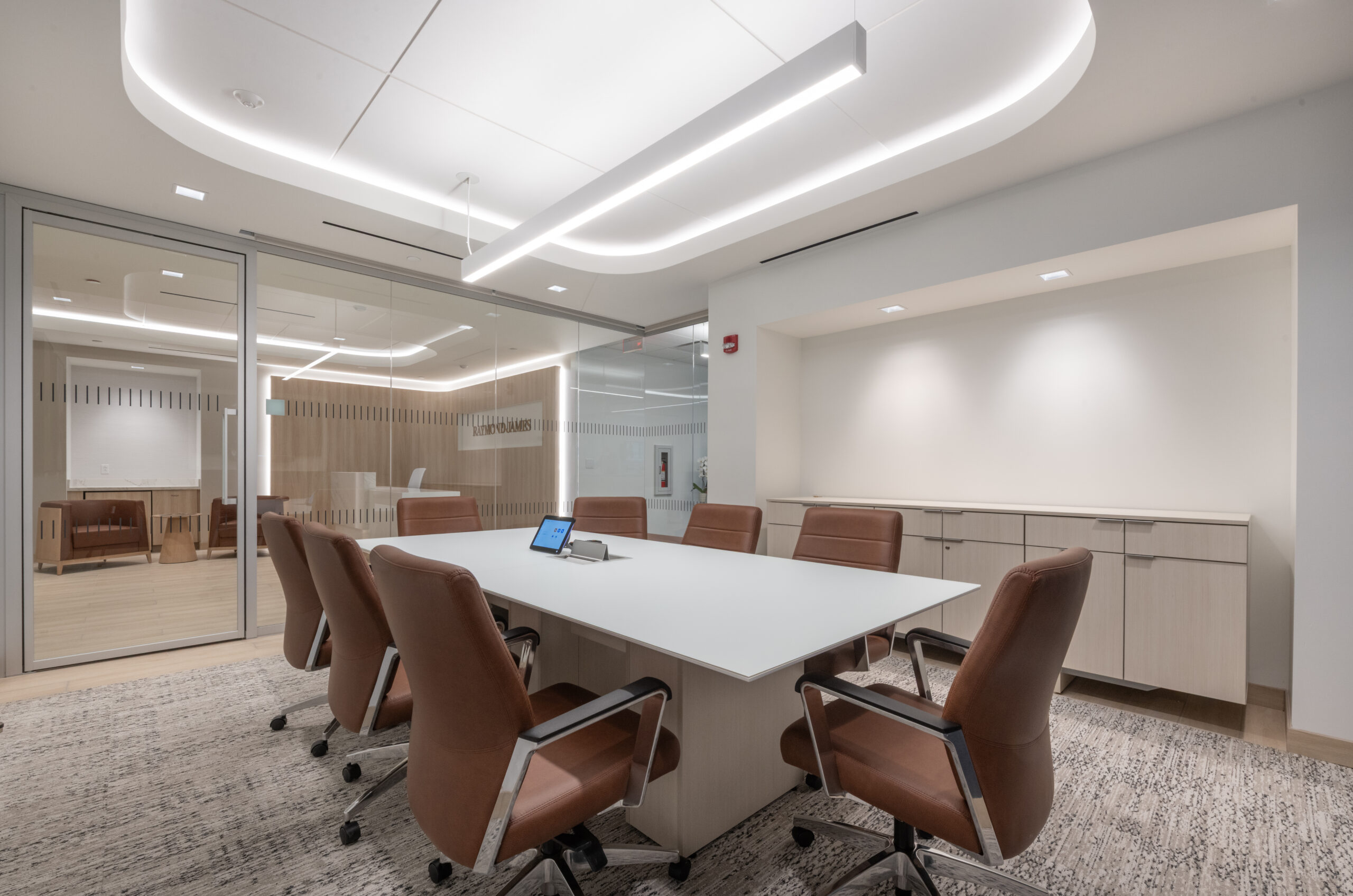 Vision 3 was pleased to work with Raymond James once again on another New England region interior fitout within approximately 4,500 square feet on the second floor of 55 William Street in Wellesley, MA. With the goal of maximizing daylight and views to the exterior, each of the eleven perimeter offices has continuous full height glass fronts, allowing light to be shared with the adjacent open office area. We worked closely with Raymond James’ furniture vendor to select pieces that compliment and balance the overall architectural themes, resulting in a space that feels comfortable and welcoming to associates and clients alike.