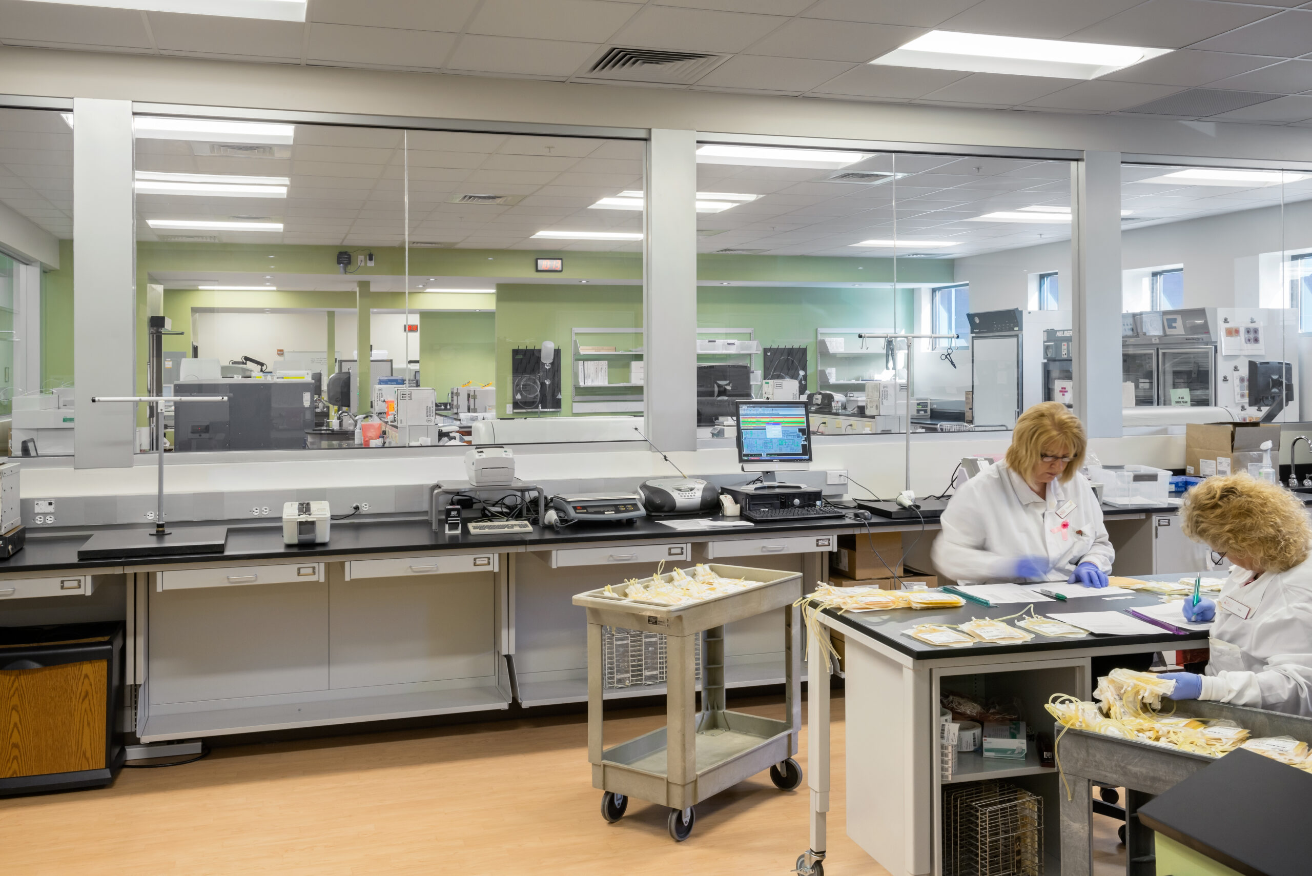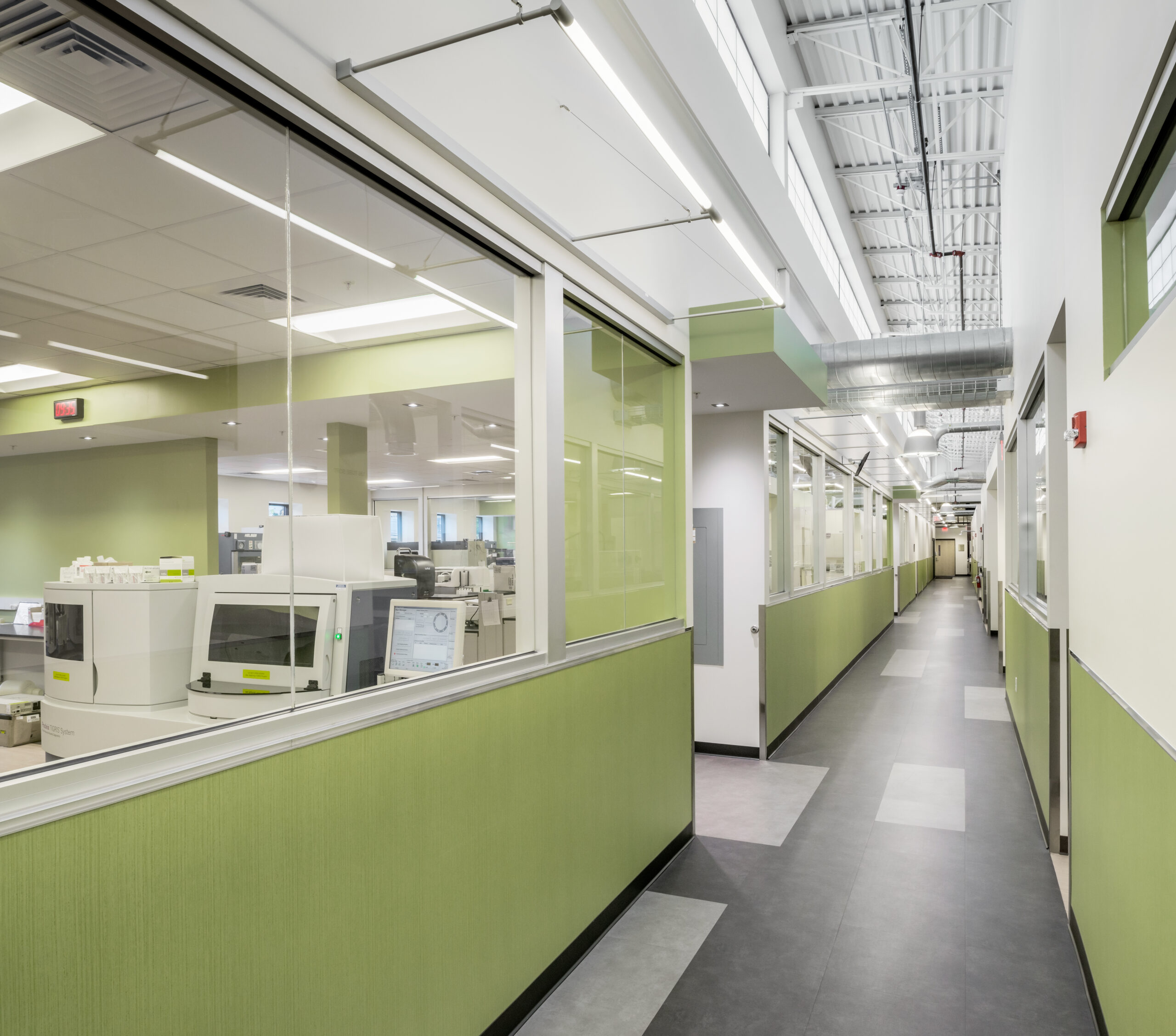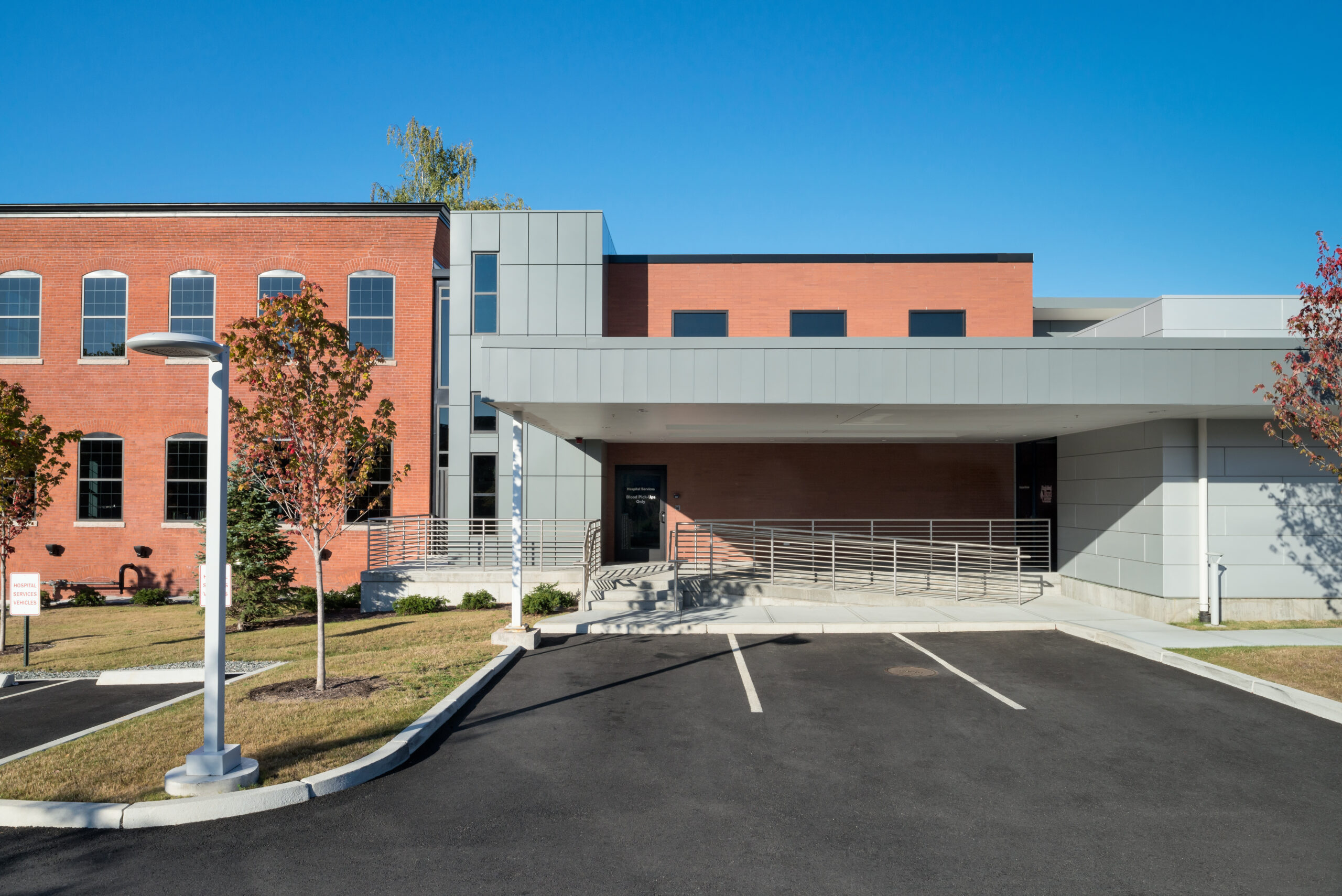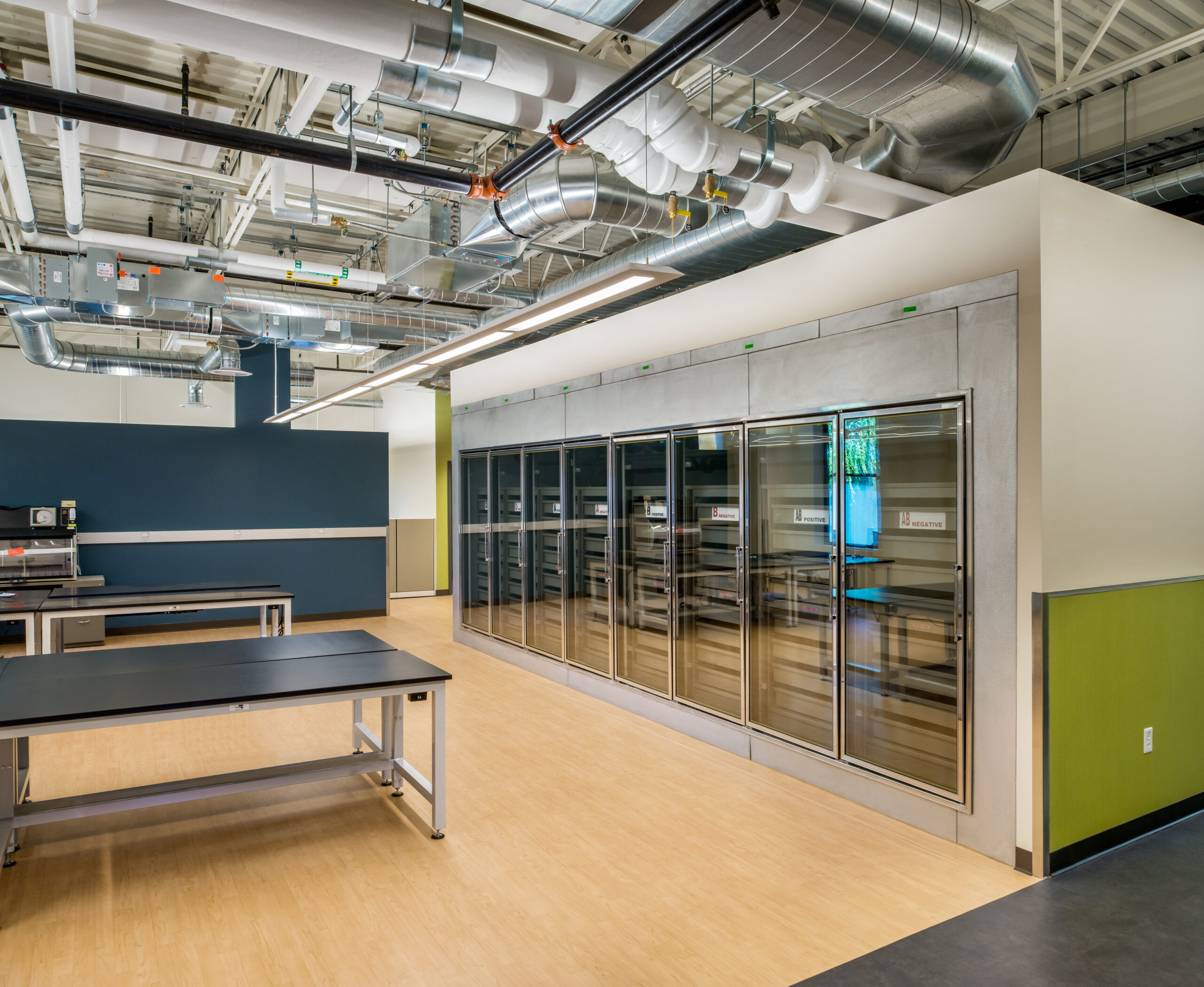 The design of the 23,000 s.f. lab building for Rhode Island Blood Center included renovations of a 2,600 s.f. existing historic building at 395 Promenade Street in Providence on property immediately adjacent to their existing headquarters. Similar to an assembly line, there is a complex procedure where blood product is brought into the building, tested, processed, stored, then distributed to local hospitals. The facility is a full-service regional blood center, providing testing, collections, marrow and cord blood programs, as well as in-hospital patient programs. The building is designed to meet National Grid’s Advanced Building’s Program. A key feature of the design is the clerestory which allows natural light into all habitable spaces of the building.