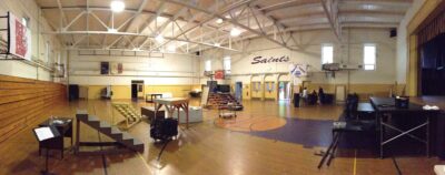 Flexibility is a key design feature of the project. The front-of-house area is a two-story lobby featuring the original building entrance archways, renovated coat closet and ticket booth leading to galleries for visual arts exhibitions. The open ceiling permits flexible installation of lighting and sound equipment, while acoustical panels dampen sound among the black roof girders. Under the stage is a storage area enabling convenient storage of instruments and sets. The new theater design meets one of the Academy’s primary goals of improved acoustic performance. The old gymnasium, with its hardwood floor, masonry walls, and wood roof structure, suffered as a noisy, inappropriate performance venue. The result is a performance space which will serve the Academy’s award winning drama club for many years to come.