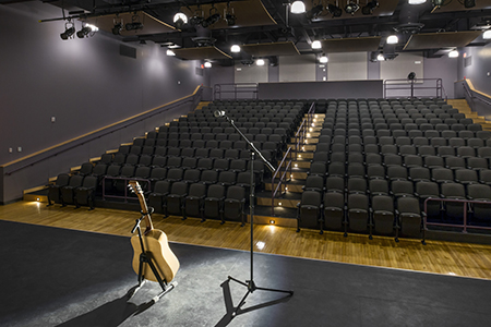 Renovation of circa-1925 gymnasium facility, repurposed exclusively for a new state-of-the-art space for the Fine Arts, located in one of the seven-building, historic campus, maintaining the historical integrity of the Academy’s Quality Hill campus. The design boasts an intimate setting of stadium-style 300-seat performance space, 1,600 s.f., art gallery, ticket booth, restrooms, and improved storage and set-design space. Leading from the lobby into the theater, the hallway walls feature alumni artwork and a gallery space before entering the theater.
