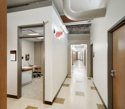 Thundermist Health Center purchased a 2-story historic mill building to relocate and expand their West Warwick Health Clinic into a space that better serves the community. The facility includes 28 primary care and behavioral health exam rooms, a 75 person multi-purpose conference room, clinical, staff, and administrative space all on one level. The design concept features the historic elements of the building including the existing clerestory windows, heavy timber construction and exposed interior stone and brick walls. Vision 3 Architects worked with the State Historic Preservation and Heritage Commission on all Certification Applications for historic tax credits.